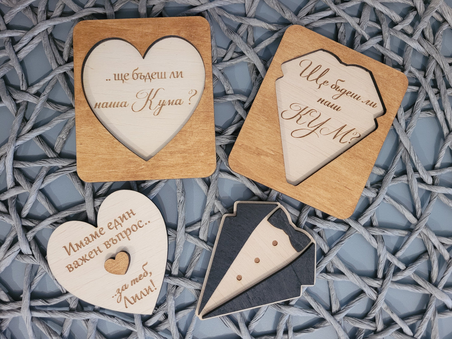 Поканете близките си по най-специалния начин. Открийте персонализирани дървени и акрилни покани...