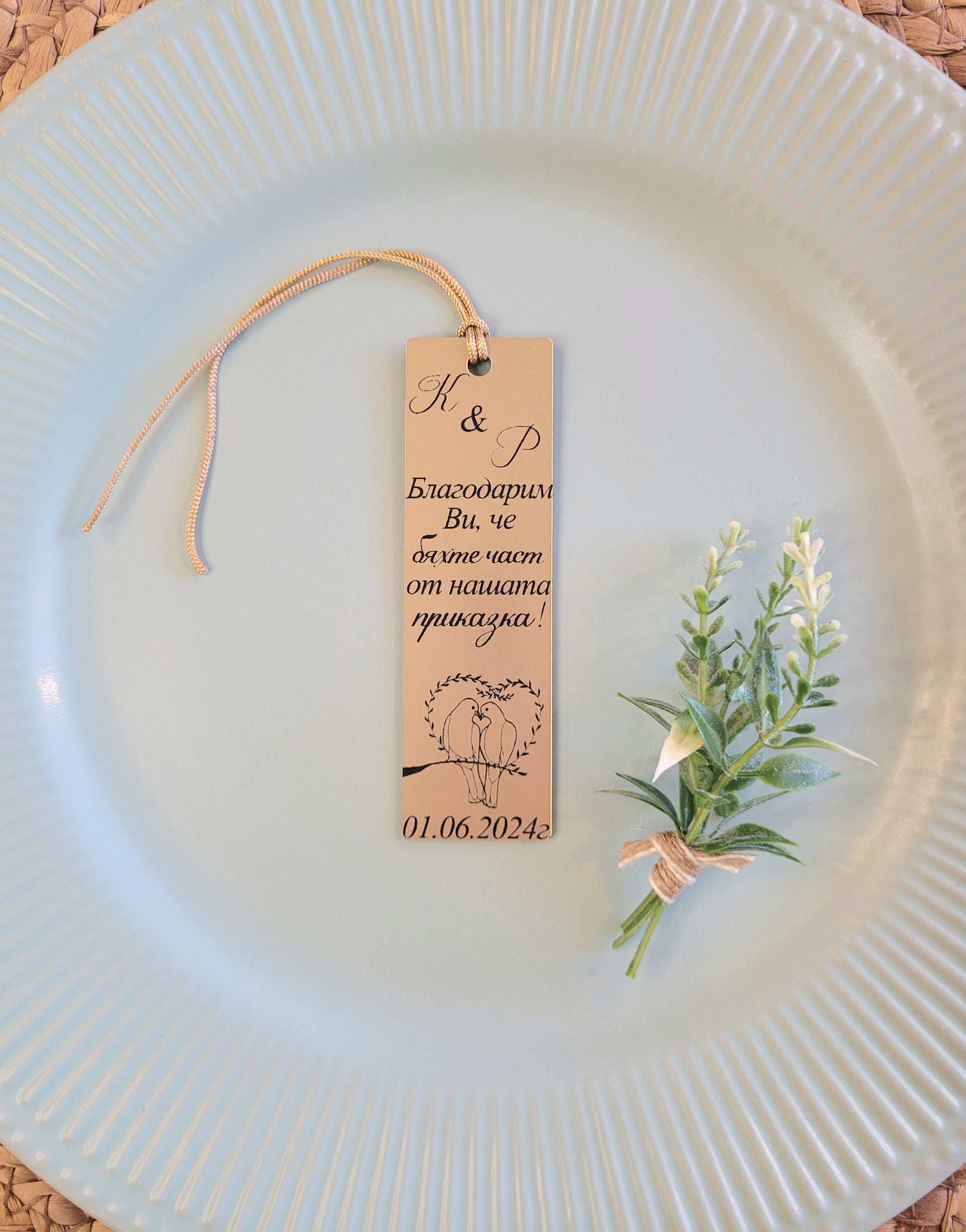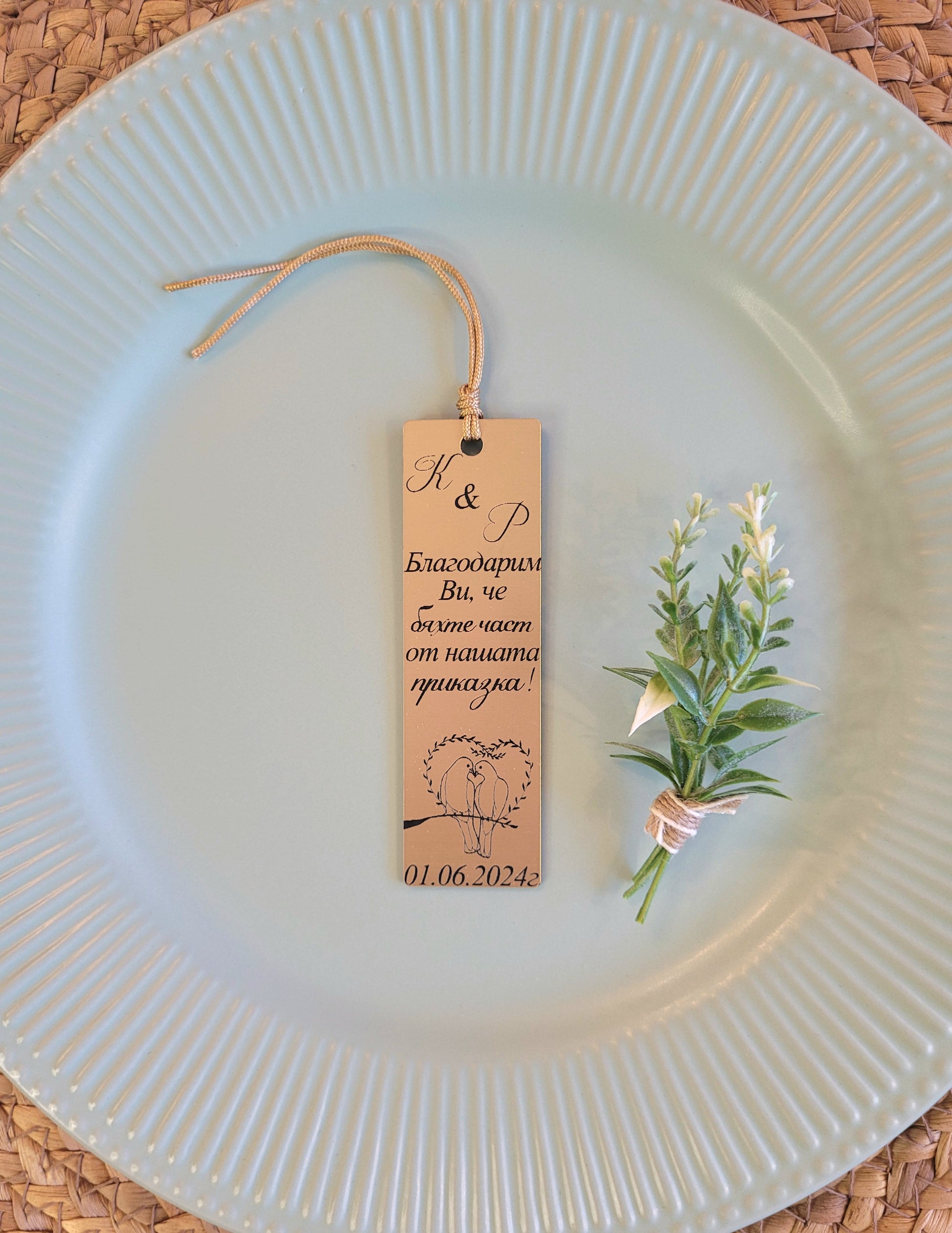 Изискан и запомнящ се жест за вашия специален ден. Този елегантен акрилен разделител за книга е лазерно гравиран с вашите имена и дата, превръщайки всеки подарък в красив спомен от сватбата. Изработен от акрил, той е лек, издръжлив и подхожда на всяка сватбена тема.