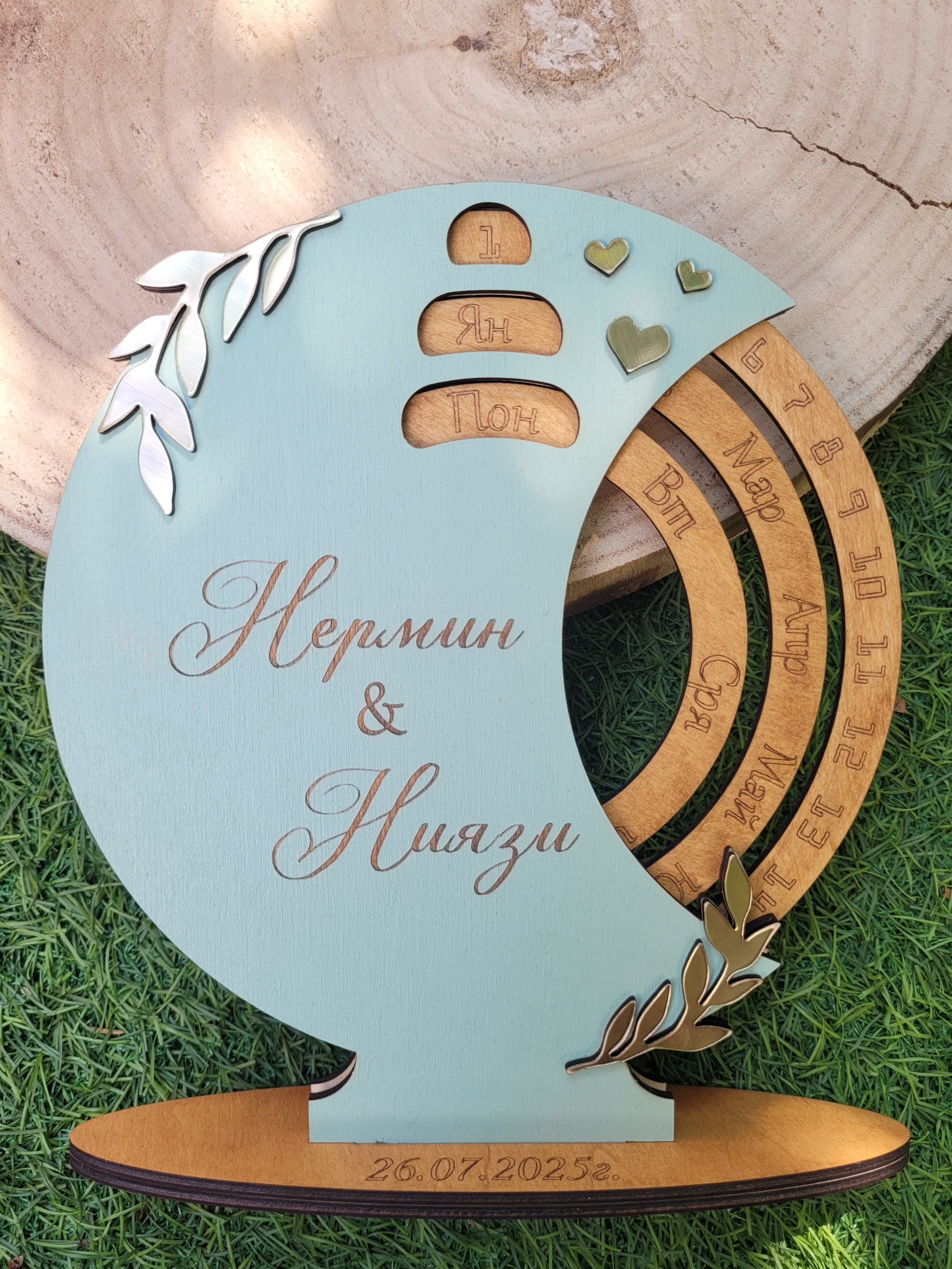 Вечен Календар и Плик за Пари – Персонализиран Дървен Подарък