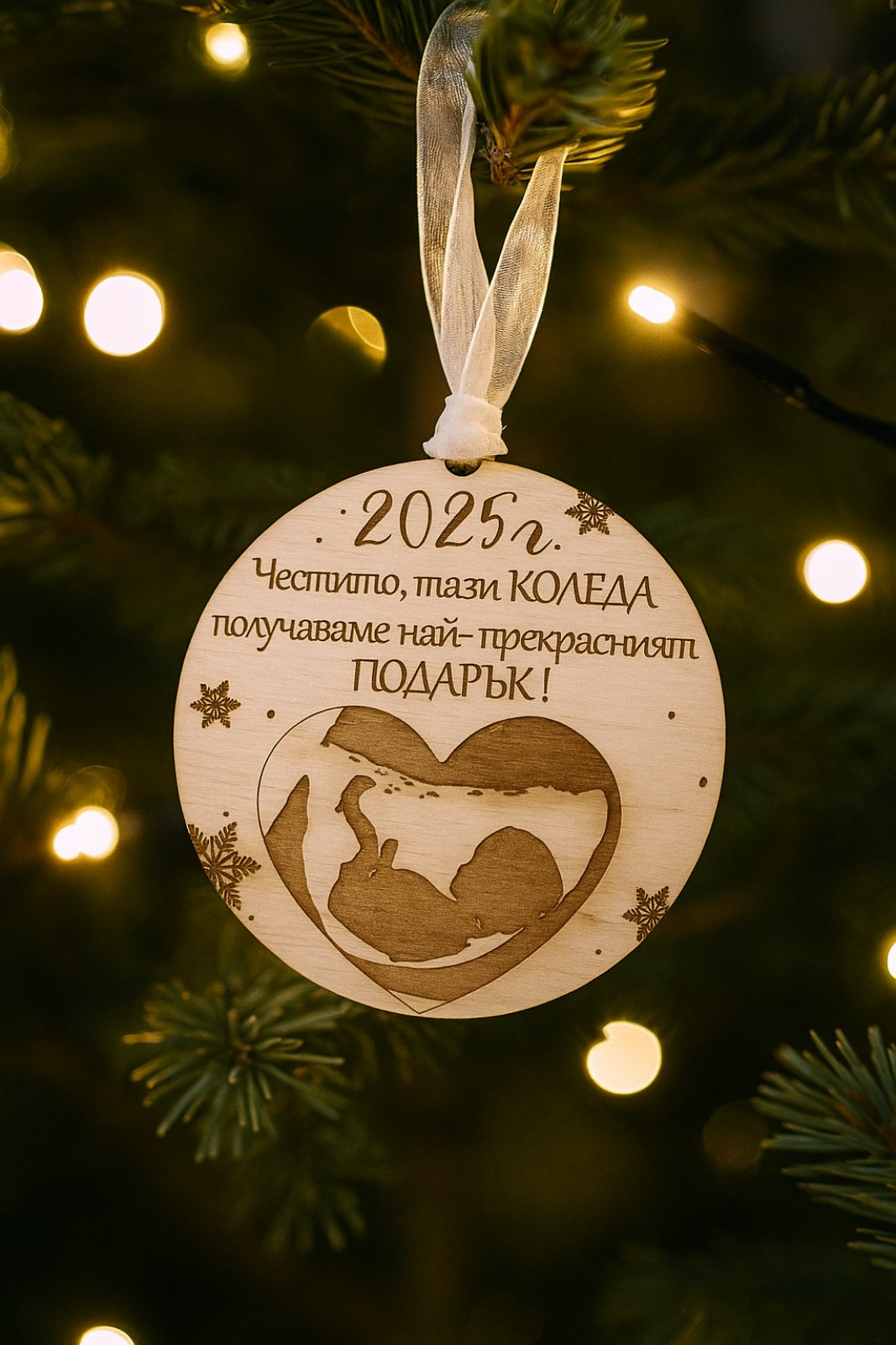 Коледен орнамент за обявяване на бебе – персонализиран празничен спомен