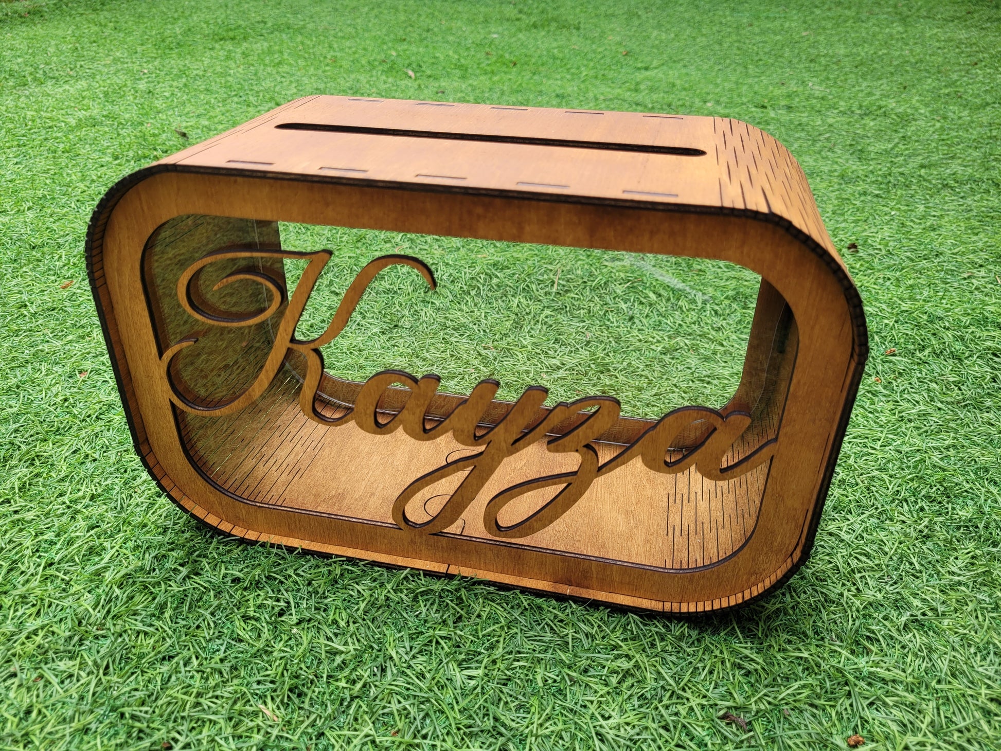 Поднесете своето подаръчно послание с финес чрез тази стилна кутия за пари и пожелания, създадена да съхрани както материалния подарък, така и топлото ви послание. Изработена от висококачествен брезов шперплат и акрил. Персонализирайте я с имена, дата или текст, и превърнете жеста в незабравим спомен.