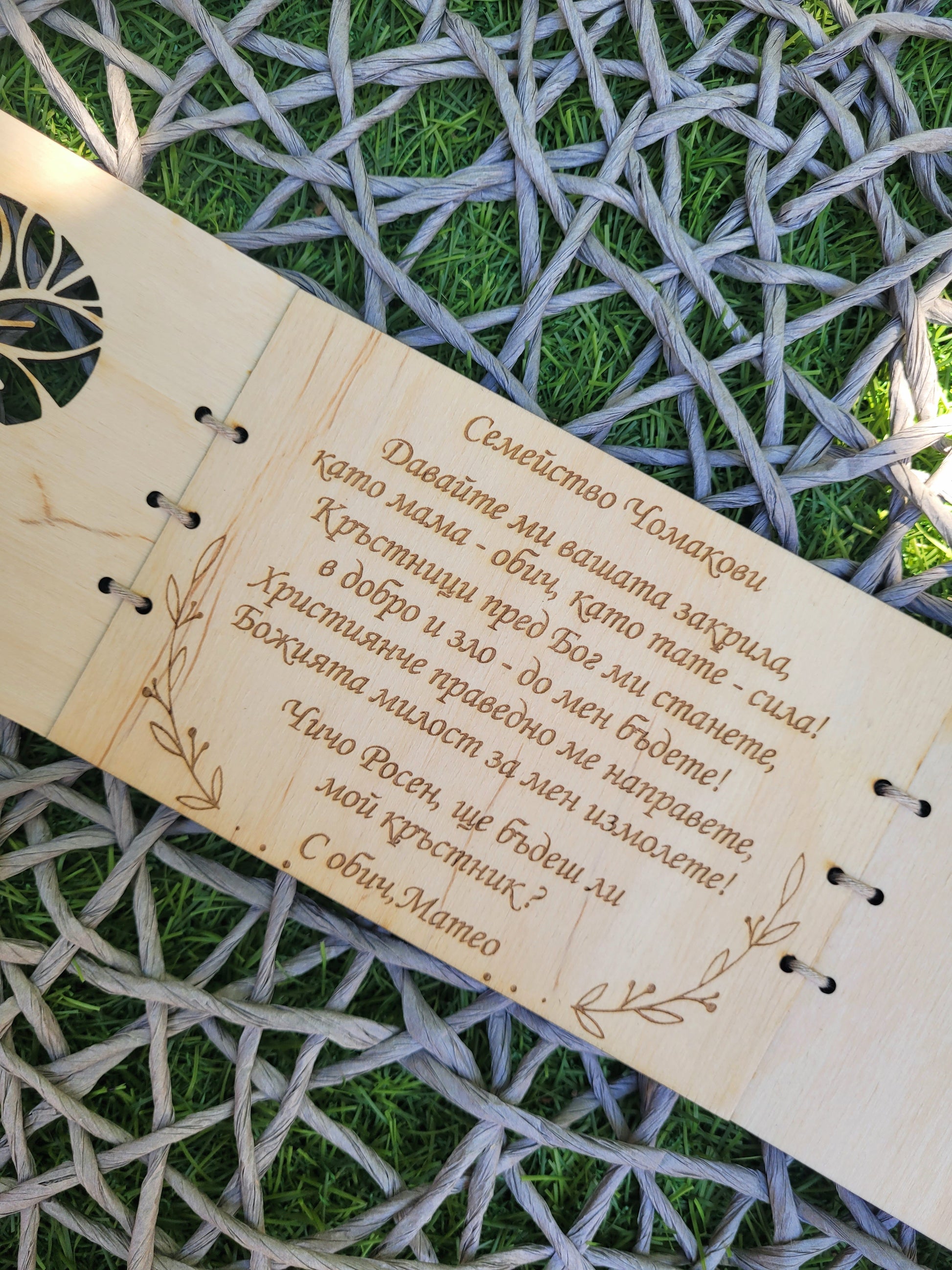 Поканете кръстниците по най-красивия начин с тази персонализирана дървена покана, създадена да превърне момента в спомен, който остава завинаги.