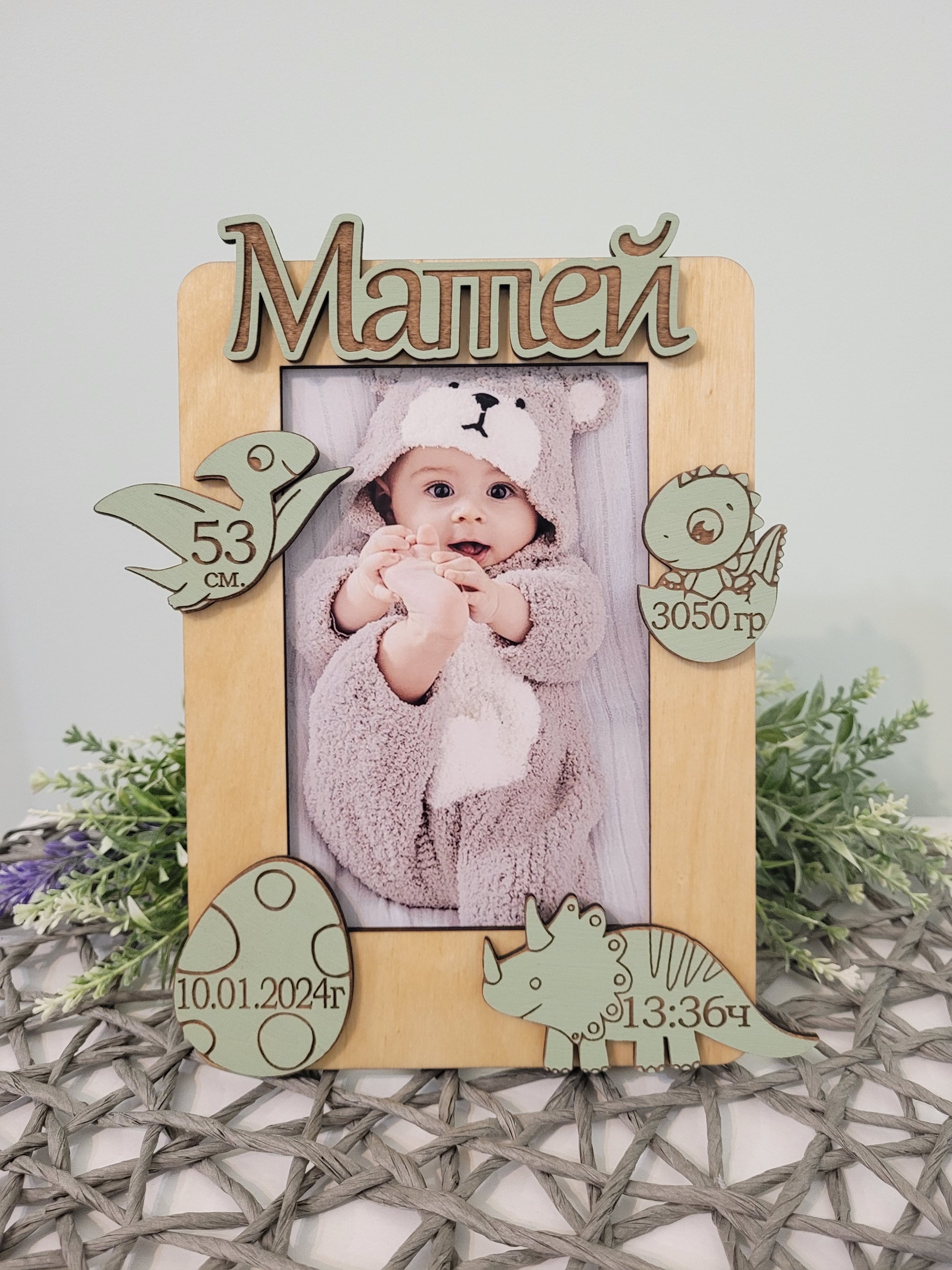 Персонализирана фоторамка за бебе – Спомен с рождени данни