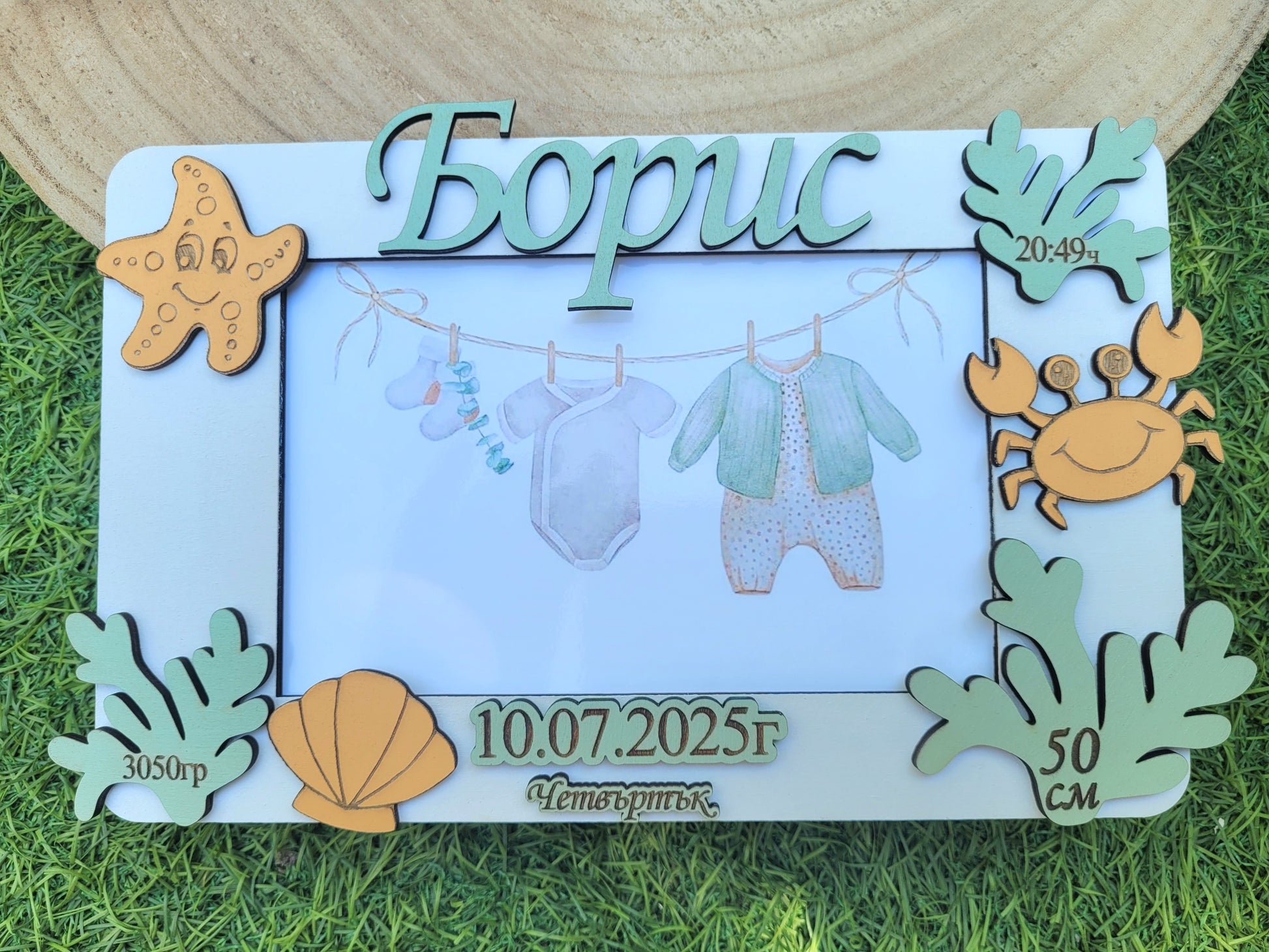 Персонализирана дървена рамка за новородено със снимка